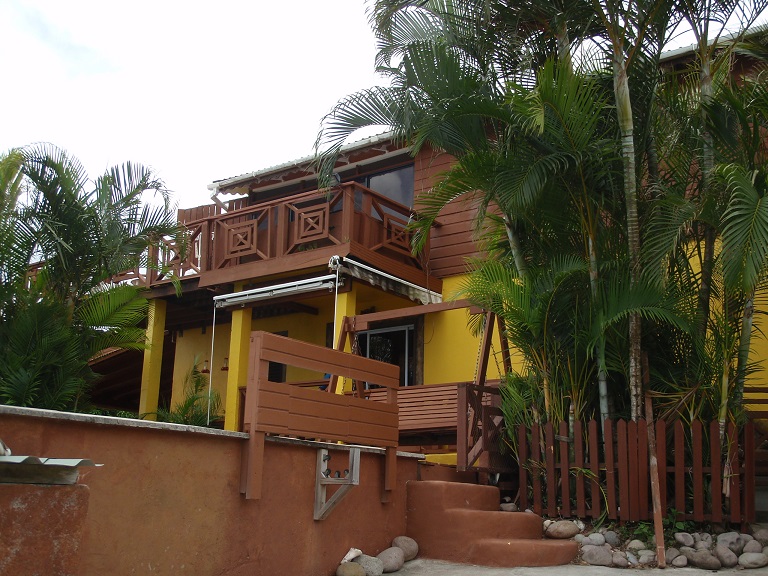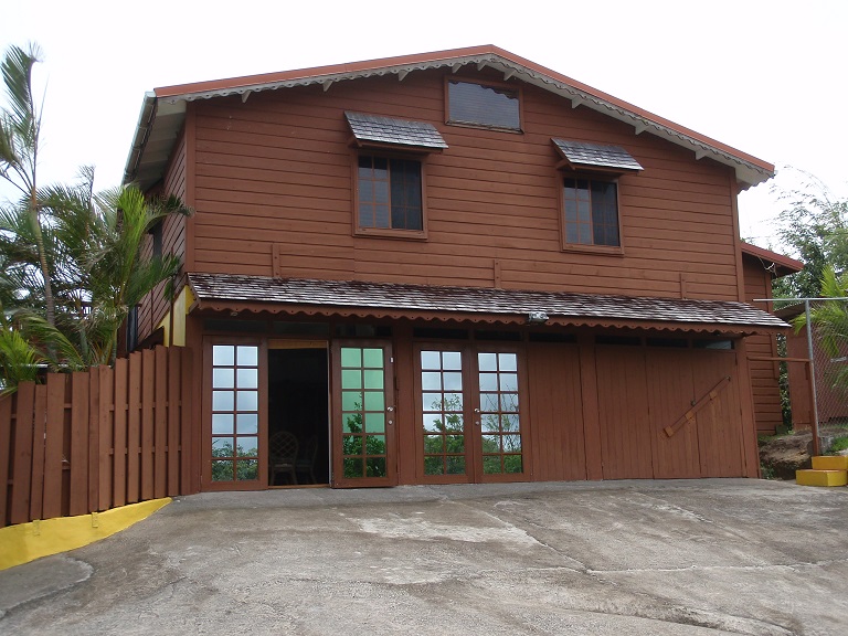 The house sits on large lot of land (7 acres) but will be sold with approximately 25,000 square feet of easy-to-maintain, landscaped gardens which will be dismembered from the whole. A simple structure of metal poles and tropical tarpaulin creates a car port that can easily accommodate four vehicles. The property is fully serviced with mains water, electricity and telecoms, and has excellent road access. It is within half an hour’s drive of the international airport, and just 15 minutes from Soufriere.