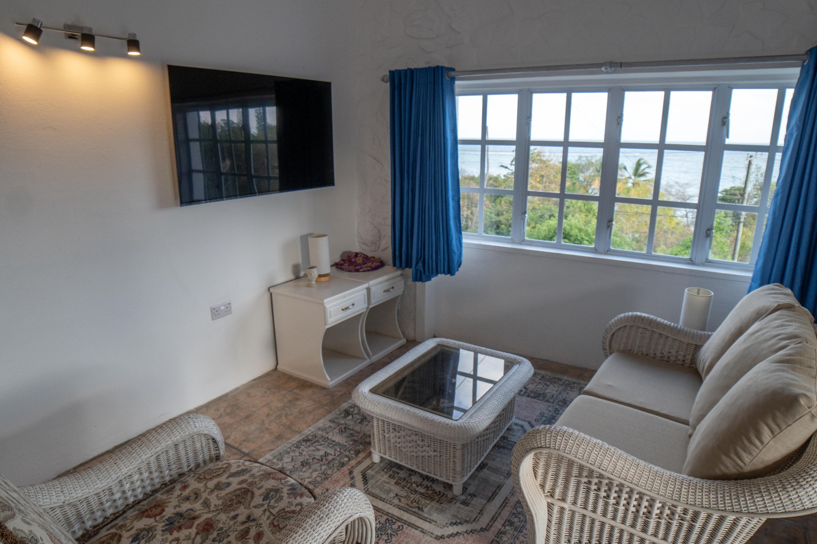 The main house consists of two full floors, with a one-bedroom apartment in the basement below. Even this guest apartment has encompassing sea views. It’s ideal for entertaining, too, as the apartment opens out onto a lovingly landscaped deck area with a free-form swimming pool and sun patio. The main house is accessed via a private driveway flanked by mature, fruit-bearing mango trees and flowering shrubs, all of which picturesquely frame both the house and the magnificent sea views.
