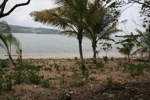 With approximately 100-ft of sandy beachfront, this unique piece of land (1.97 acres) is located on the south-side of Praslin Bay, ideally suited for a high-end villa. The water at Praslin Bay is reef-protected and the bay is shallow and calm with azure-blue water on the many clear, sunny days the island gets. The land lies about a mile from the main Castries-Vieux Fort highway, and accessed via an unsealed plantation road. The land slopes gently and is covered in secondary growth trees and bush making it perfect for construction. There are coconuts and almond trees on the beach, as well as some low shrubs.
