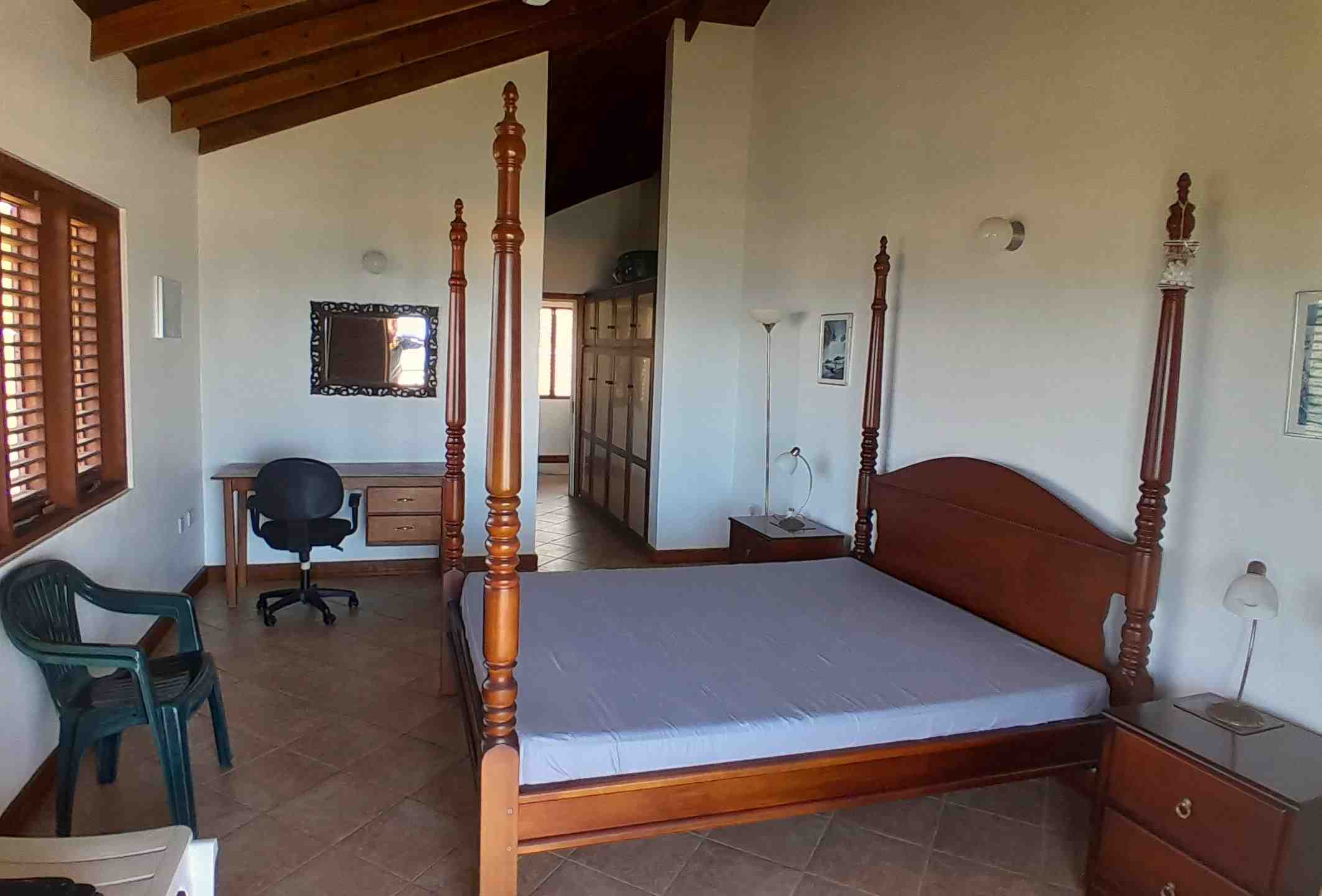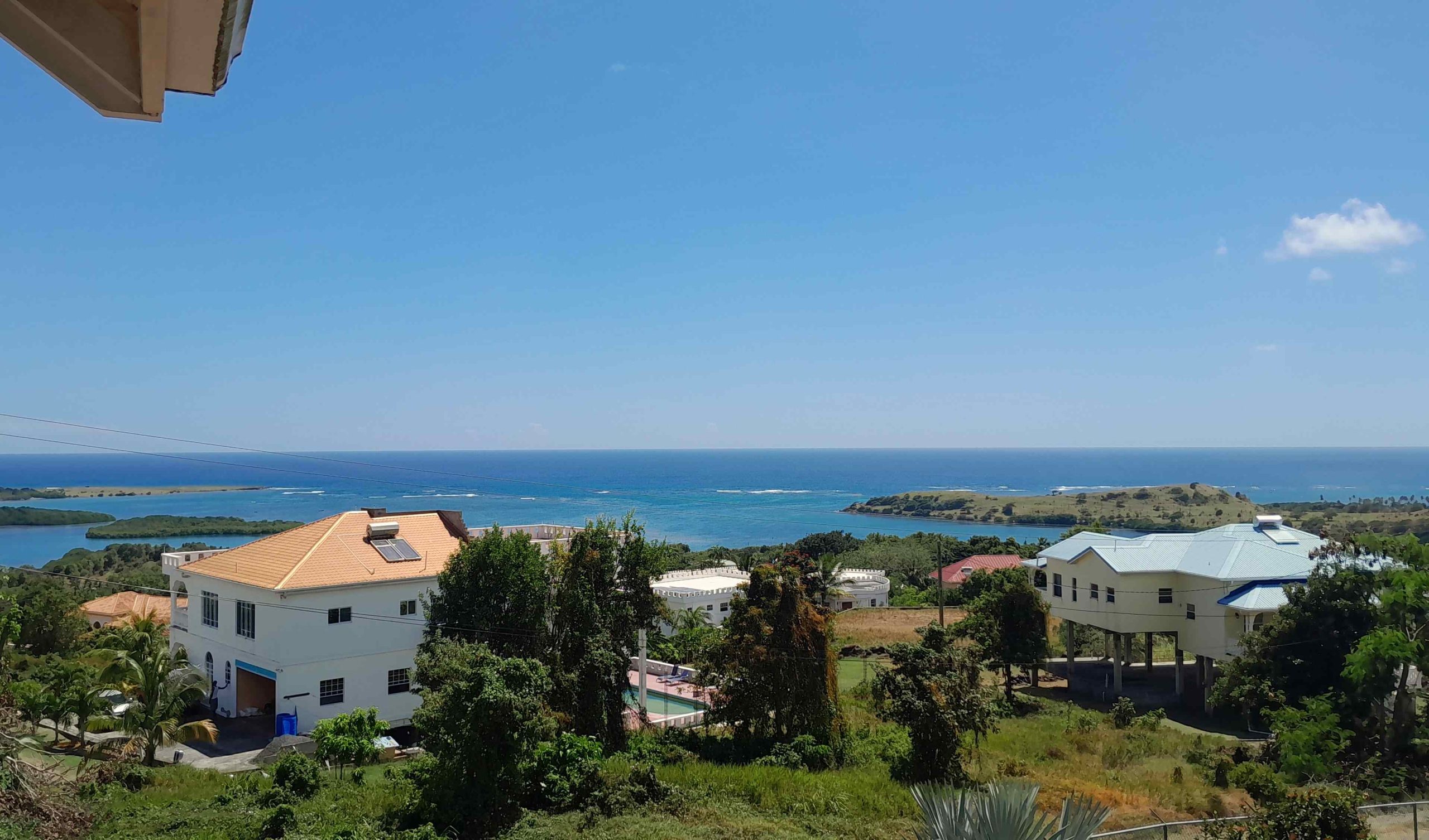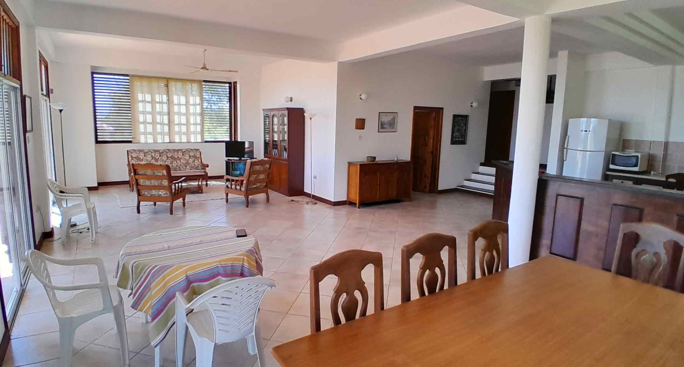 Constructed of steel-reinforced concrete, off-set with lots of wooden details and accents, this is a very straight-forward house to maintain. In terms of living space and comfort, it provides everything one requires, including three bedrooms and four bathrooms on the top floor, and a laundry room, utility room and of course several balconies and spacious patios in all the right places so that there’s always a cool, breezy, shady area to be found to relax and entertain guests. The property is fully fenced and has ample room for parking. All utilities are in place except for pipe-born water, but there is ample storage in the back-up rain water tanks (8,000 gallons) to provide for the needs of an average household.