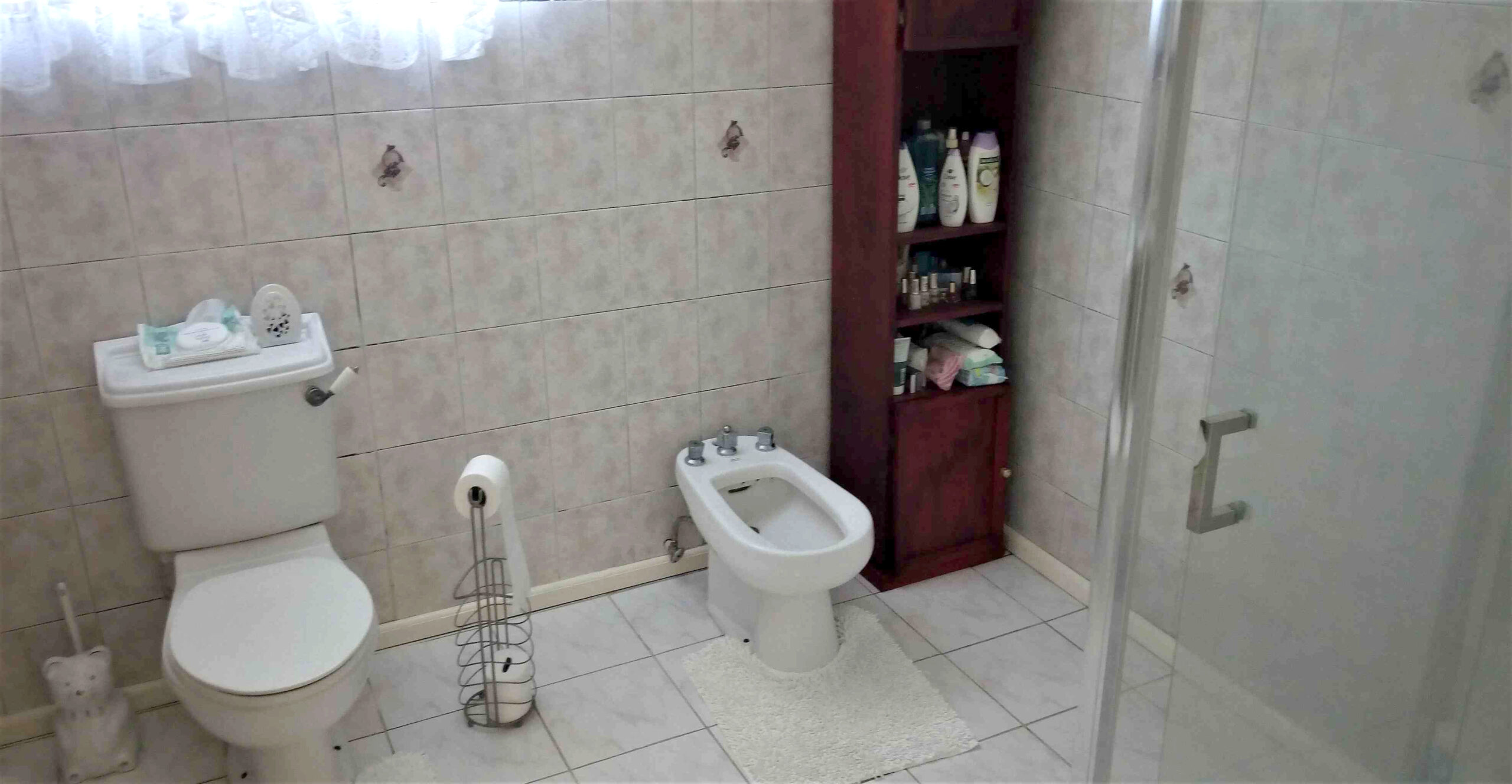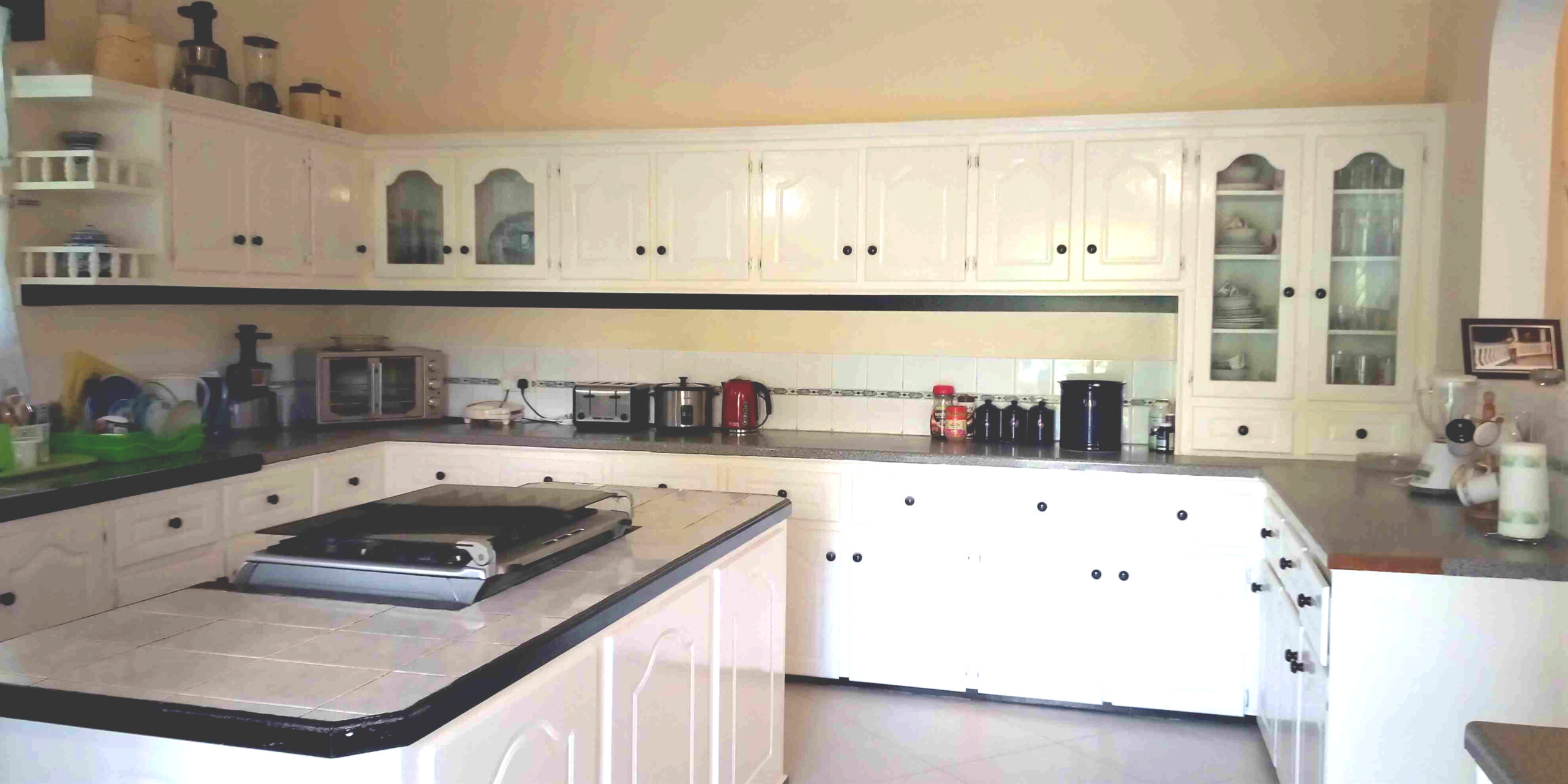 The house spreads over one level, with just a few steps separating the kitchen from the dining and living areas. Ingenious lay-out makes this is very inviting family home, with different lounge areas merging into one another. Two large guest bedrooms share a bathroom, while the large master bedroom features an ensuite bathroom, and garden-side balcony.