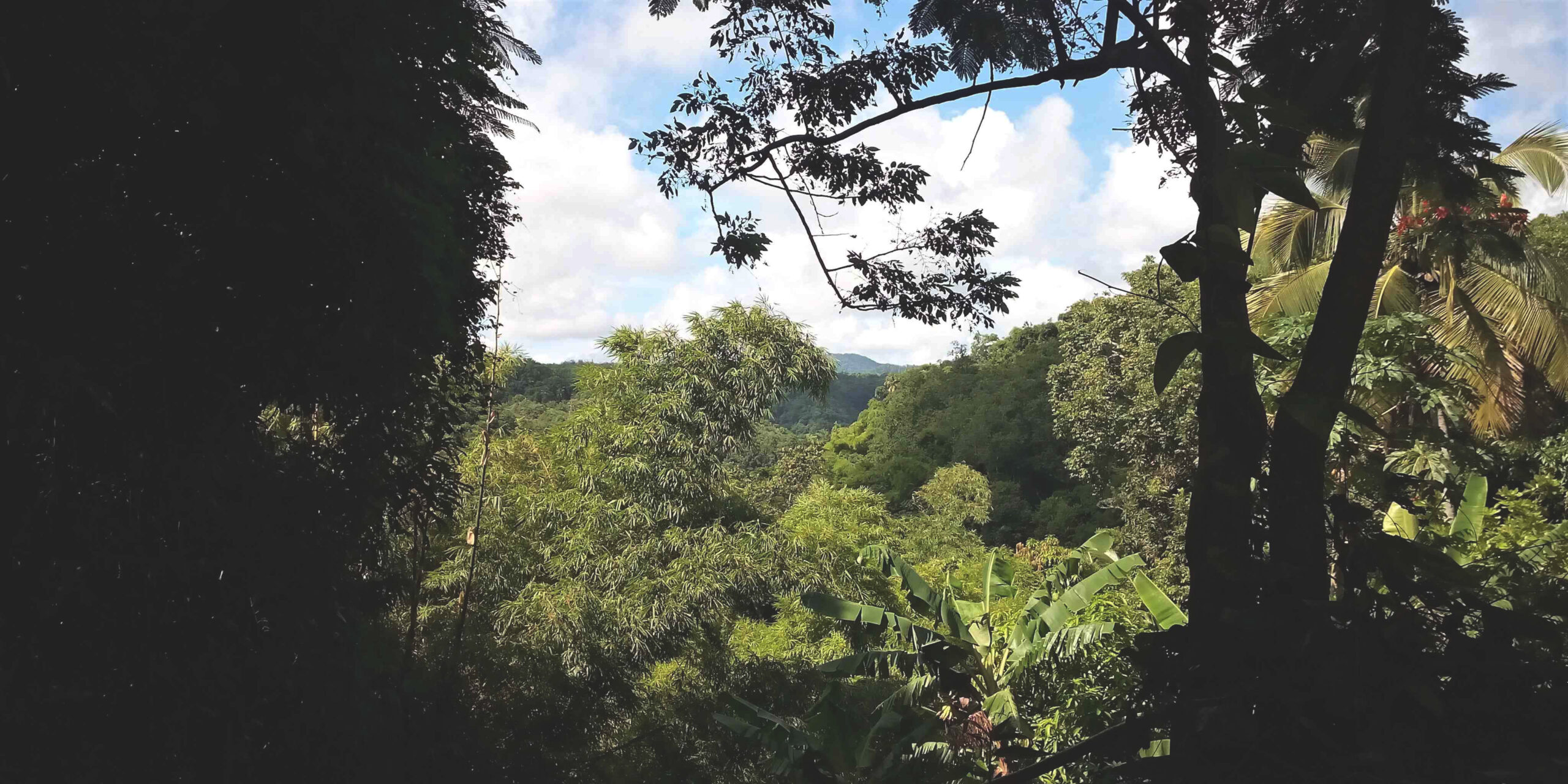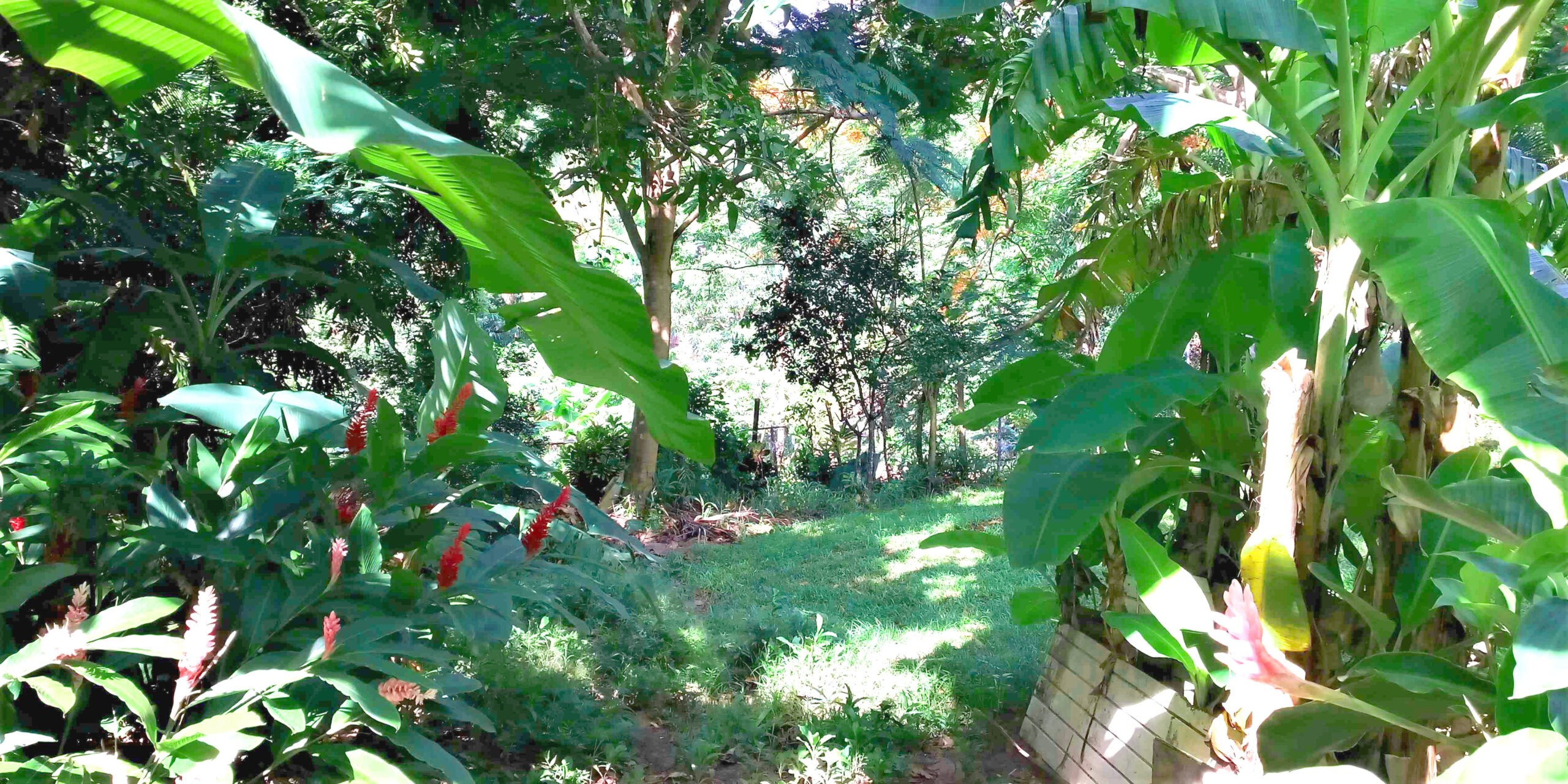 The garden is 1.24 acres in size, and slopes gently away from the entrance and the house, giving the house and balcony magnificent tropical views over the gardens and, beyond that, the river gorge that’s deep, wide, and filled with huge stands of bamboo and trees.